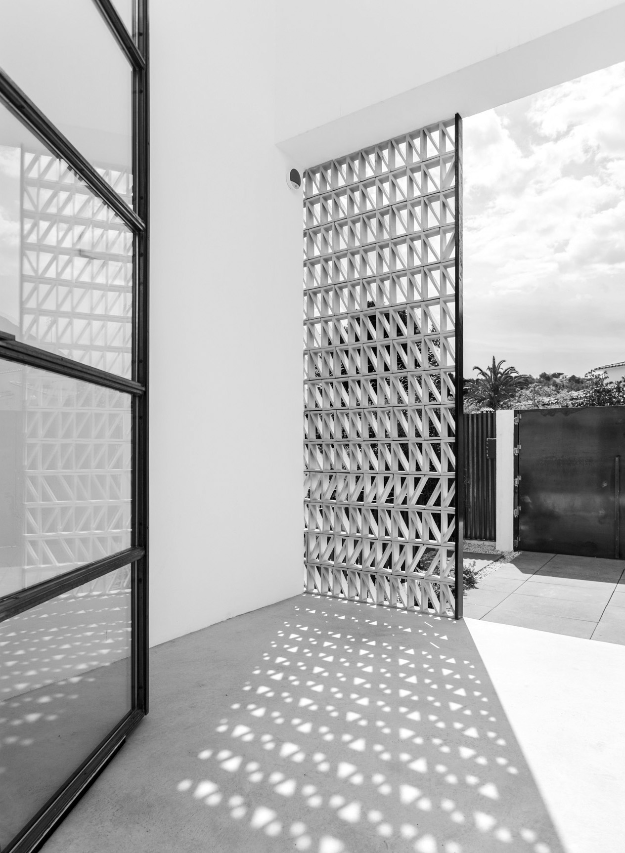 Hace once años diseñamos esta celosía para una casa muy especial: la nuestra. No buscábamos solo una solución técnica, sino una piel que filtrara la luz como lo hacen los pinos de Las Rotas —ese juego sutil de sombras móviles, esa penumbra viva que cambia con las horas y las estaciones. Queríamos que la arquitectura respirara con el sol del Mediterráneo, que la casa mirara sin mostrarse, y que lo hiciera con un lenguaje propio.