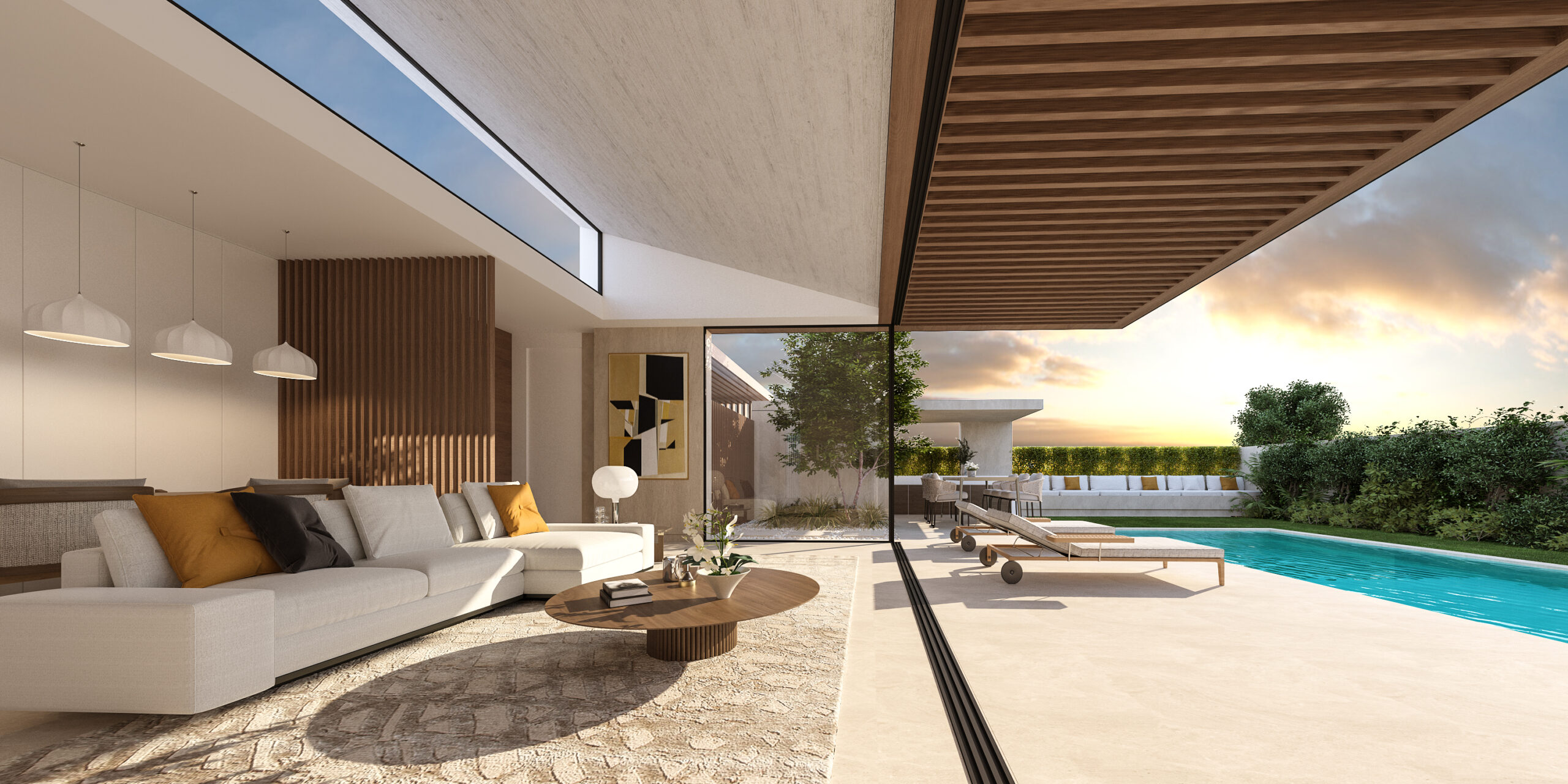 Un espacio sin fronteras entre los diferentes ambientes de la casa para poder disfrutar del espacio exterior desde todas las estancias. Un concepto de vivienda que gira en torno a la modernidad, pero desde su relación con el paisaje Mediterráneo y con esta forma de entender la vida, desde la sencillez y la combinación de elementos muy naturales.